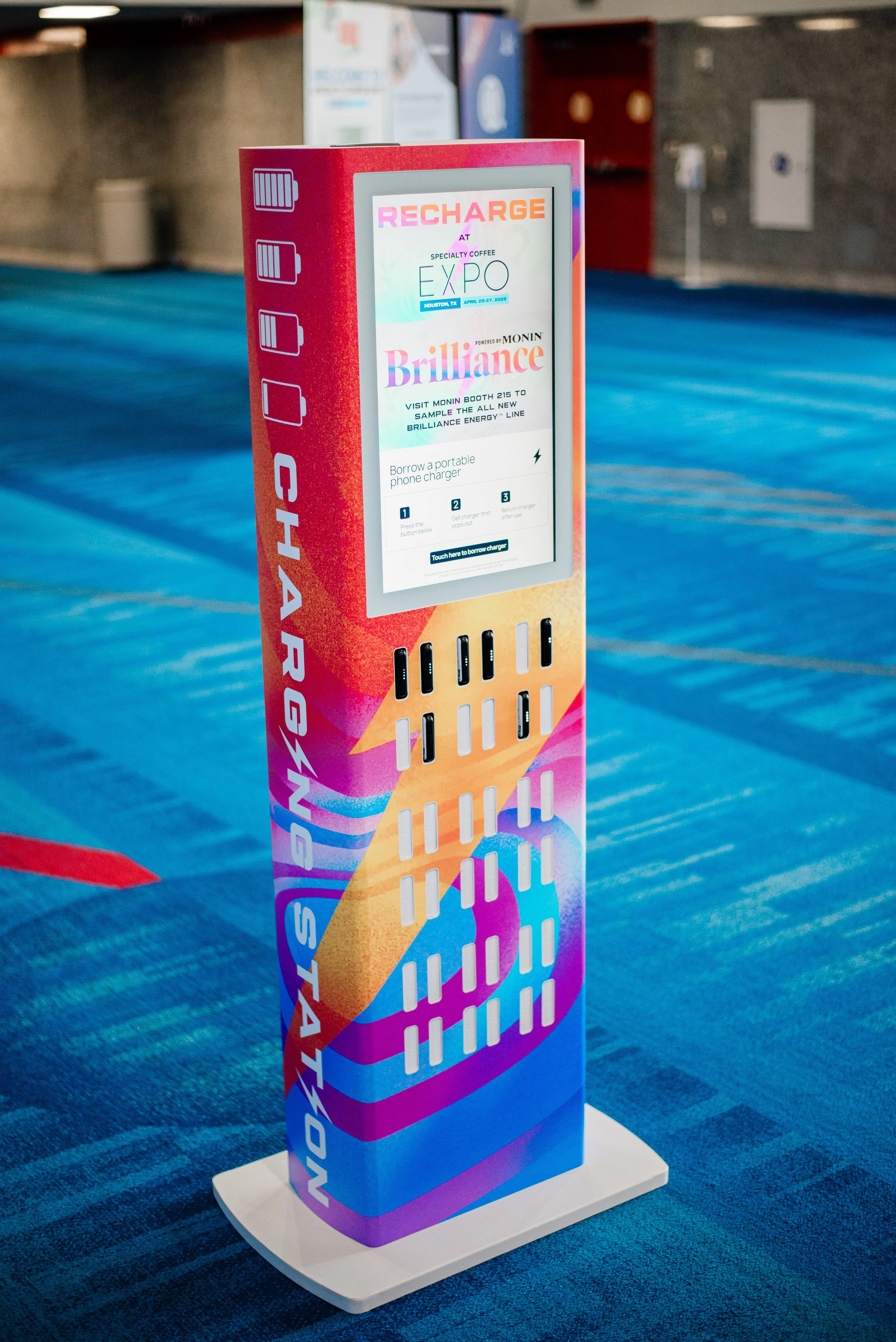 A large event like World of Coffee San Diego can be very taxing on your electronic devices. If you’re running low on power, be sure to grab a portable charging device from one of the charging stations located around the show floor. Take it with you and keep it connected to your device until it’s fully restored. Then return the charging device to the docking station when you’re done!